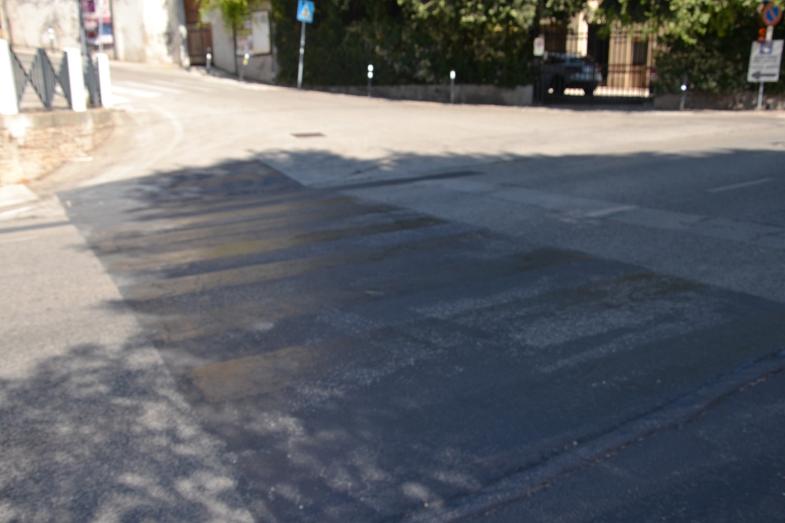 Le strisce pedonali cancellate in via Cesare Battisti ad Osimo