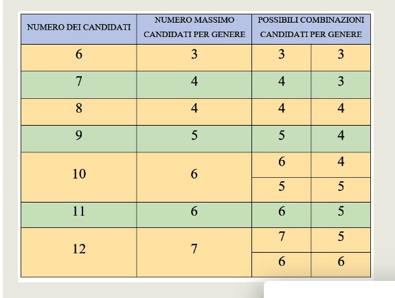 TABELLA PER LA RAPPRESENTANZA DI GENERE