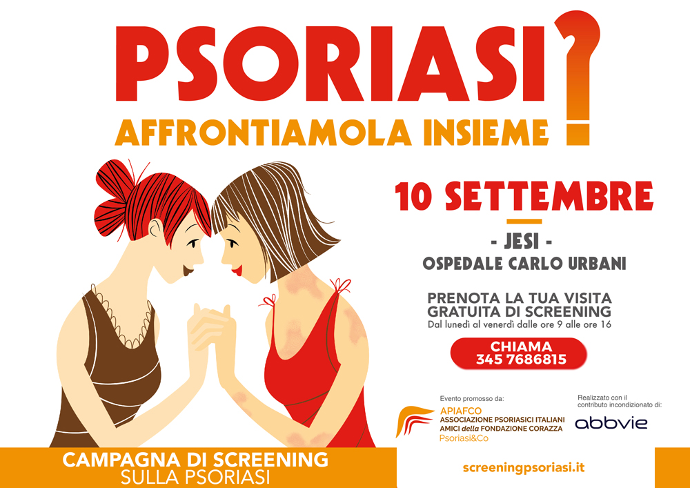 A Jesi i consulti dermatologici gratuiti su prenotazione e fino ad esaurimento dei posti disponibili dedicate a chi soffre di malattia psoriasica nell’ambito della Campagna di screening sulla psoriasi “Psoriasi? Affrontiamola insieme”. La Campagna di screening “Psoriasi? Affrontiamola insieme”, promossa da Apiafco (Associazione Psoriasici Italiani Amici della Fondazione Corazza) e realizzata grazie al contributo incondizionato di AbbVie, ha lo scopo di far entrare in contatto i pazienti psoriasici con i centri di riferimento in modo da facilitare la diagnosi e favorire i percorsi di cura adeguati per la gestione corretta della malattia. Le visite si svolgeranno martedì 10 settembre presso l’Uoc di Dermatologia dell’Ospedale Carlo Urbani di Jesi, diretta dal dottor Giuseppe Lemme. La prenotazione è obbligatoria contattando il centralino dedicato al numero 345 7686815 dal lunedì al venerdì dalle ore 9 alle ore 16.