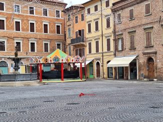 Montate e già accese da qualche giorno le luminare per la Festa di San Giuseppe da Copertino nel centro storico di Osimo. Oggi in piazza Boccolino è stata montata anche la giostrina per i bambini.