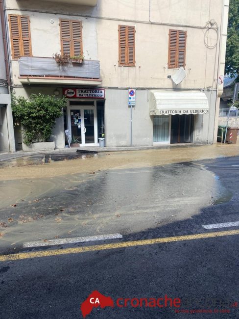 L’acqua è scesa da via Pergolesi, confluendo poi in via Mamiani.