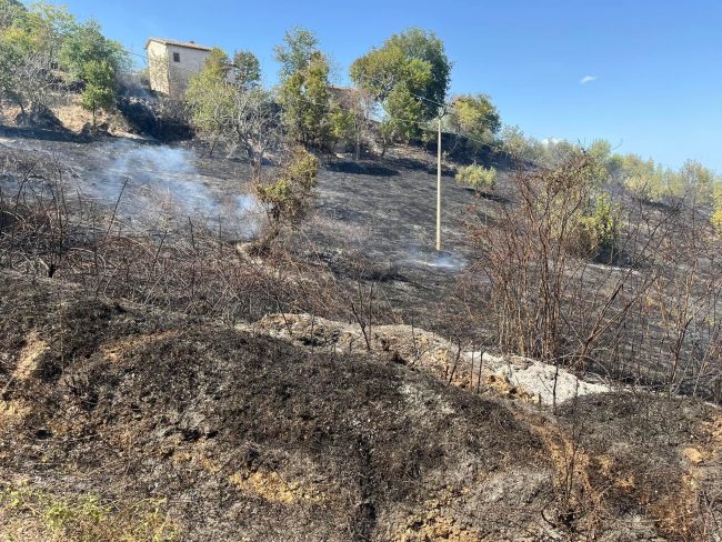 Intervento dei vigili del fuoco accorsi intorno alle 13 nella frazione Montefortino, nel comune di Arcevia, a seguito dell’incendio di sterpaglie sviluppatosi su un terreno agricolo a ridosso di alcune abitazioni.