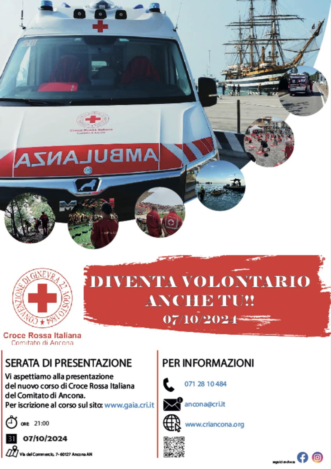 Lunedì 7 ottobre alle 21 presso la sede ad Ancona in via del Commercio 7, ci si potrà incontrare e conoscere meglio. La Cri, illustrerà infatti ai presenti, il percorso di quella che sarà una vera e propria, «straordinaria avventura all’insegna del volontariato e della solidarietà».
