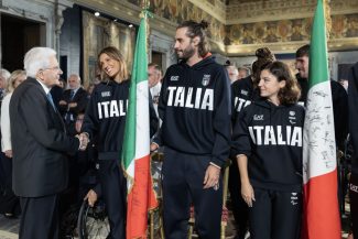 «L’Italia ha fatto ancor meglio di Tokyo ed era difficile – ha sottolineato in un passaggio del suo discorso il presidente Mattarella – Questo incontro al Quirinale desidera prolungare la festa dello sport che è iniziata con la consegna delle bandiere e si è sviluppata nei giochi….Vorrei dire a Gianmarco Tamberi e a Ambra Sabatini che loro le medaglie le hanno conquistate con la loro generosa partecipazione e l’affetto di tutti» ha specificato ancora il presidente della Repubblica. Al termine della cerimonia il capo dello Stato ha stretto la mano e si è complimentato con tutti gli azzurri applaudendoli uno per uno e ha scambiato qualche parola in più con alcuni di loro, anche con il campione anconetano di salto in alto Gianmarco Tamberi.