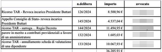 Le spese legali affrontate fino ad oggi dall’Amministrazione Pirani (Clicca sull’immagine per ingrandirla)