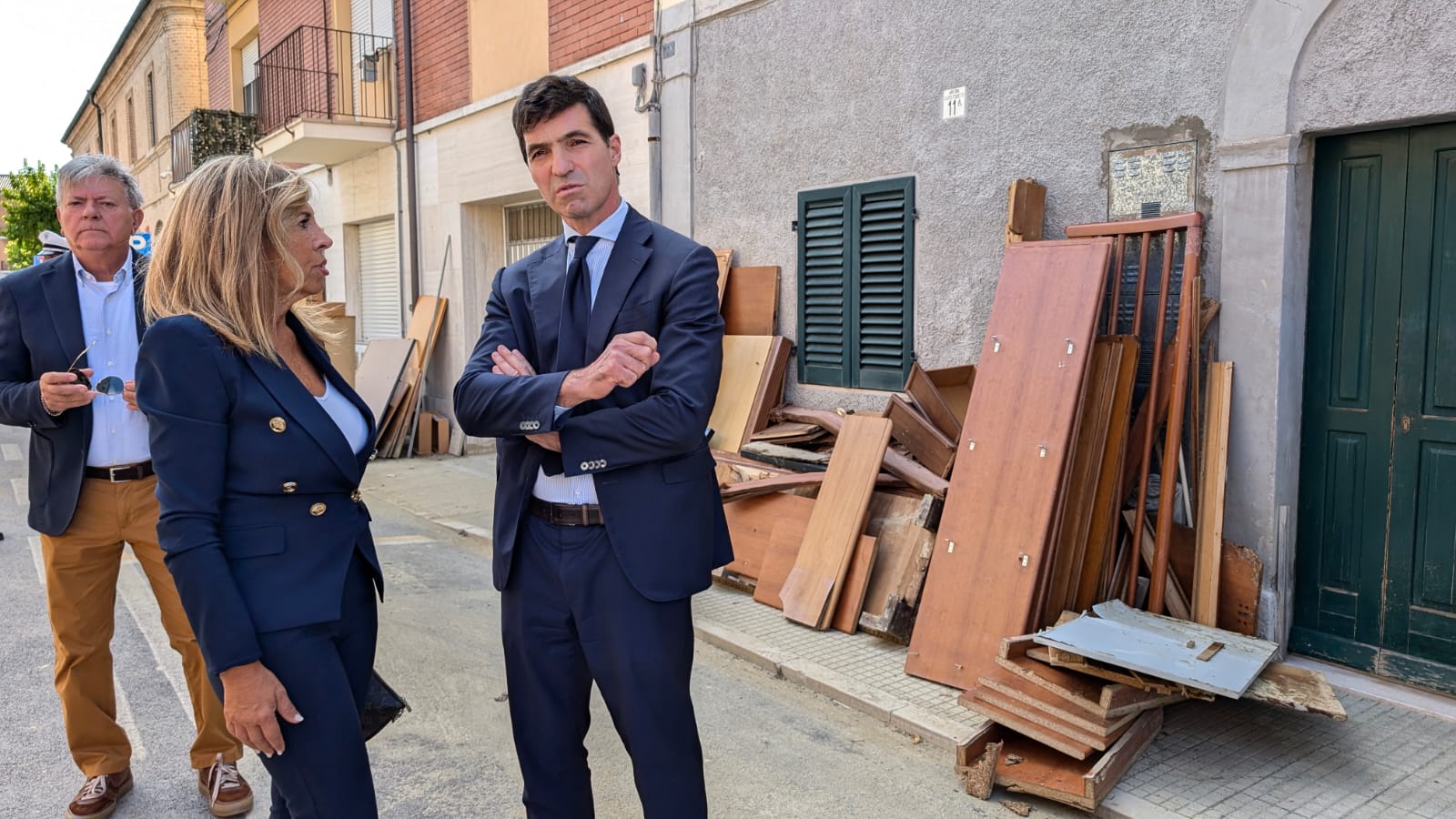 Il presidente della Regione e commissario all’Alluvione Francesco Acquaroli, insieme al sindaco Stefania Signorini, questo pomeriggio ha effettuato un primo sopralluogo a Castelferretti di Falconara, una delle zone più colpite dal maltempo che il 18 e il 19 settembre ha interessato la zona collinare e le diverse province.