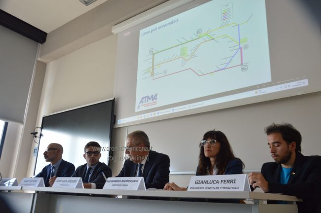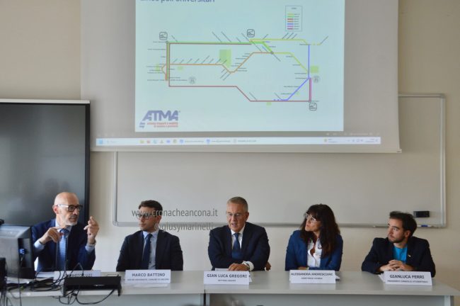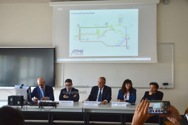 E’ un servizio nuovo, realizzato sulla base delle esigenze emerse dagli studenti, che andrà in favore di tutta la componente studentesca e universitaria del capoluogo. University Link, presentato stamattina alla facoltà di medicina e chirurgia dell’Univpm, nasce da un protocollo tra la stessa università, il Comune e Conerobus con lo scopo di potenziare il collegamento tra le stazioni ferroviarie e le sedi universitarie di Monte Dago e Torrette. La nuova linea consentirà di collegare la stazione ferroviaria centrale con quella di Torrette, poi il bus proseguirà per la sede di medicina e chirurgia, passando per la statale fino alla Baraccola e al parcheggio scambiatore posto dopo Angelini, poi Brecce Bianche, facoltà di ingegneria e stazione ferroviaria di Passo Varano, oppure prima la stazione e poi la facoltà, a seconda degli orari dei treni.