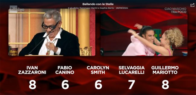 Carolyn Smith invece ha invece proposto un 6 spiegando di aver trovato «un ragazzo molto giovane con un movimento molto sensuale dalla parte del bacino e mi ha colpito come riesce ad ammorbidire il movimento con le ginocchia. Molto particolare la combinazione tra voi due. E’ pazzesco, continuate ad andare avanti così!». Ivan Zazzaroni l’ha definita «la seconda cosa più bella che ho visto questa sera» ed è stato inevitabile il suo 8. «Tommaso è centratissimo ed ha una fluidità che piace. Sembra che è quello che vorrebbe sempre fare, però è campione del mondo di fioretto. Veramente bravo».