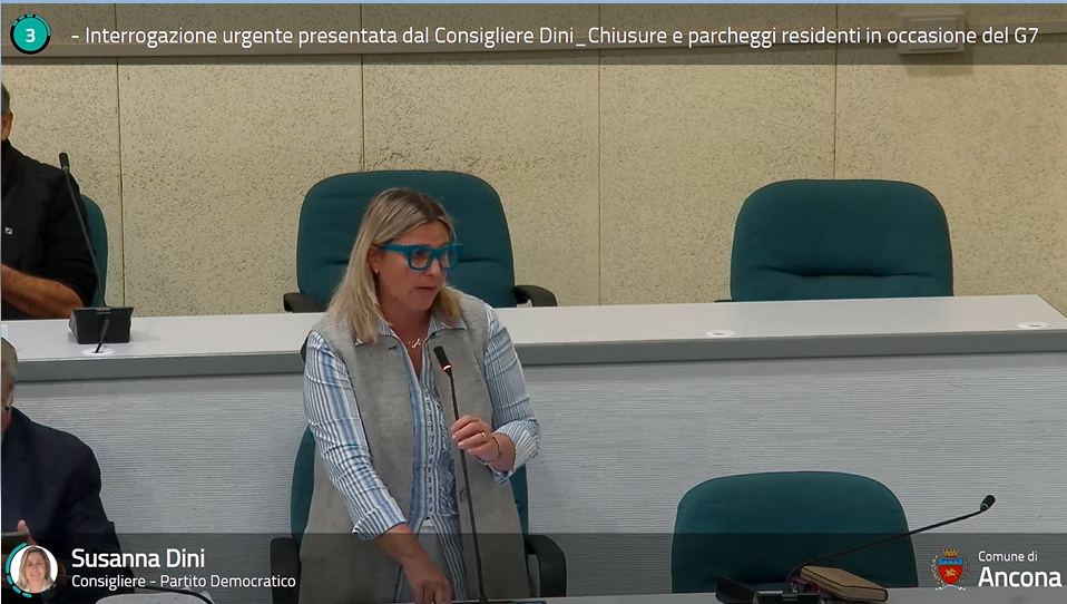 Chiusure dei negozi, aree del centro blindate e altre restrizioni programmate nei giorni del G7 Salute, per approfondire nei dettagli le misure studiate dall’Amministrazione comunale in vista dell’evento internazionale programmato ad Ancona dal 9 all’11 ottobre, stamattina in Consiglio comunale la consigliera Susanna Dini ha interrogato l’Amministrazione comunale. «Abbiamo visto per l’area degli Archi sono stati previsti posti riservati ai residenti al parcheggio e ci stavamo chiedendo che succederà per i residenti del centro storico. – ha osservato la consigliera del Pd- Nella comunicazione abbia letto che potranno parcheggiare da via Giovanni XXIII in su. Perché anche qui non avete pensato magari a Parcheggio Traiano e al parcheggio Cialdini. Le auto dei residenti sono tante ed essendo giorni lavorativi, si dovranno spostare normalmente».