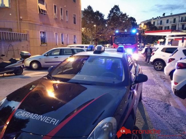 Intervento di carabinieri e vigili del fuoco nella serata in una palazzina in Largo Sarnano, al Piano.