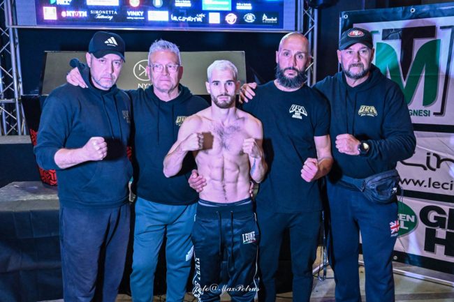 Il pugile anconetano Mattia Occhinero sul ring del Palacasali per il titolo Wbc