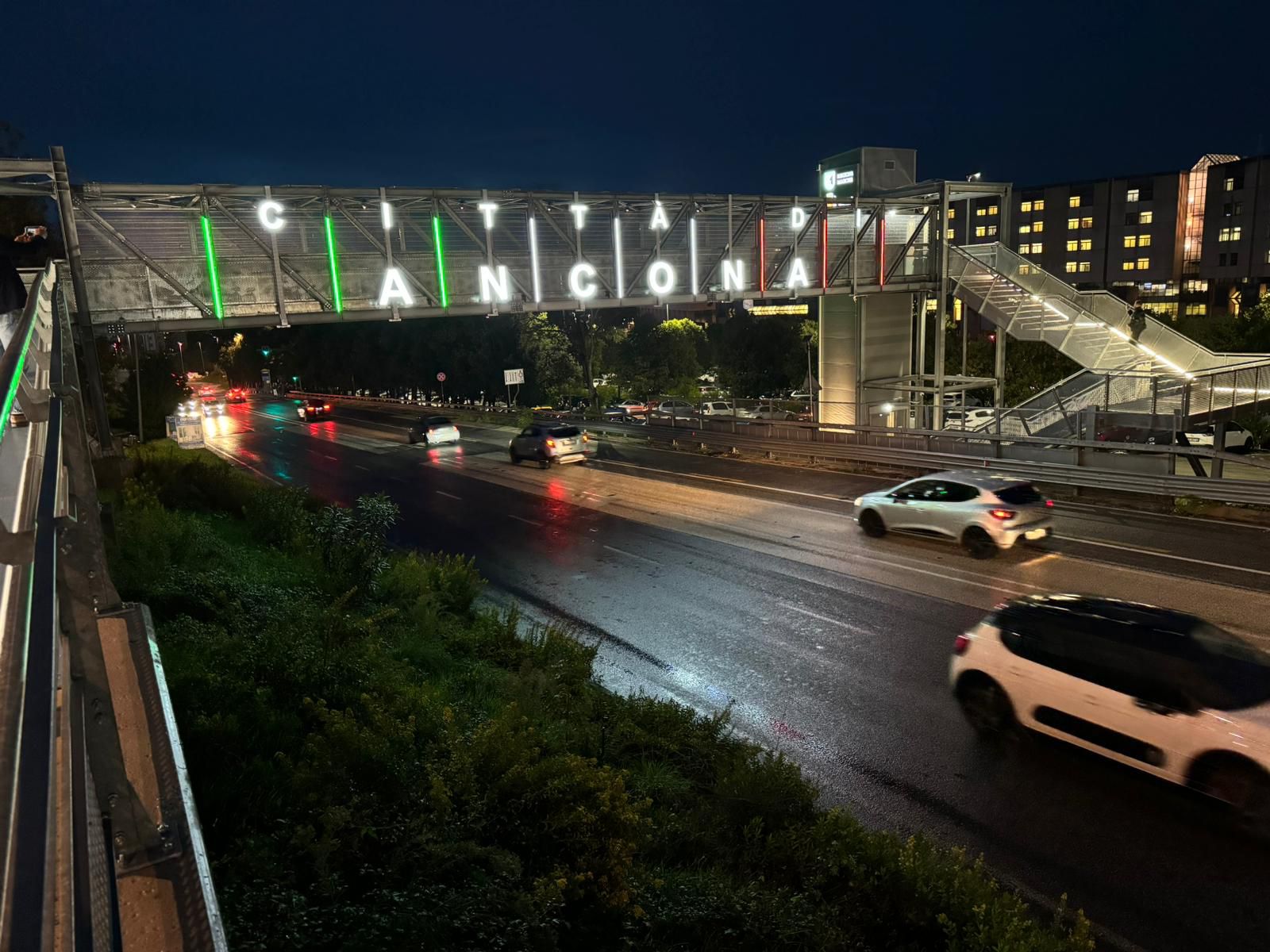 «Si è acceso il “benvenuto” sul ponte di Torrette per chi entra in città da nord».