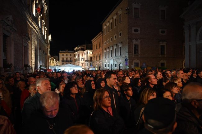 OSIMO – Piazza del Comune ieri sera gremita per ascoltare il cantautore