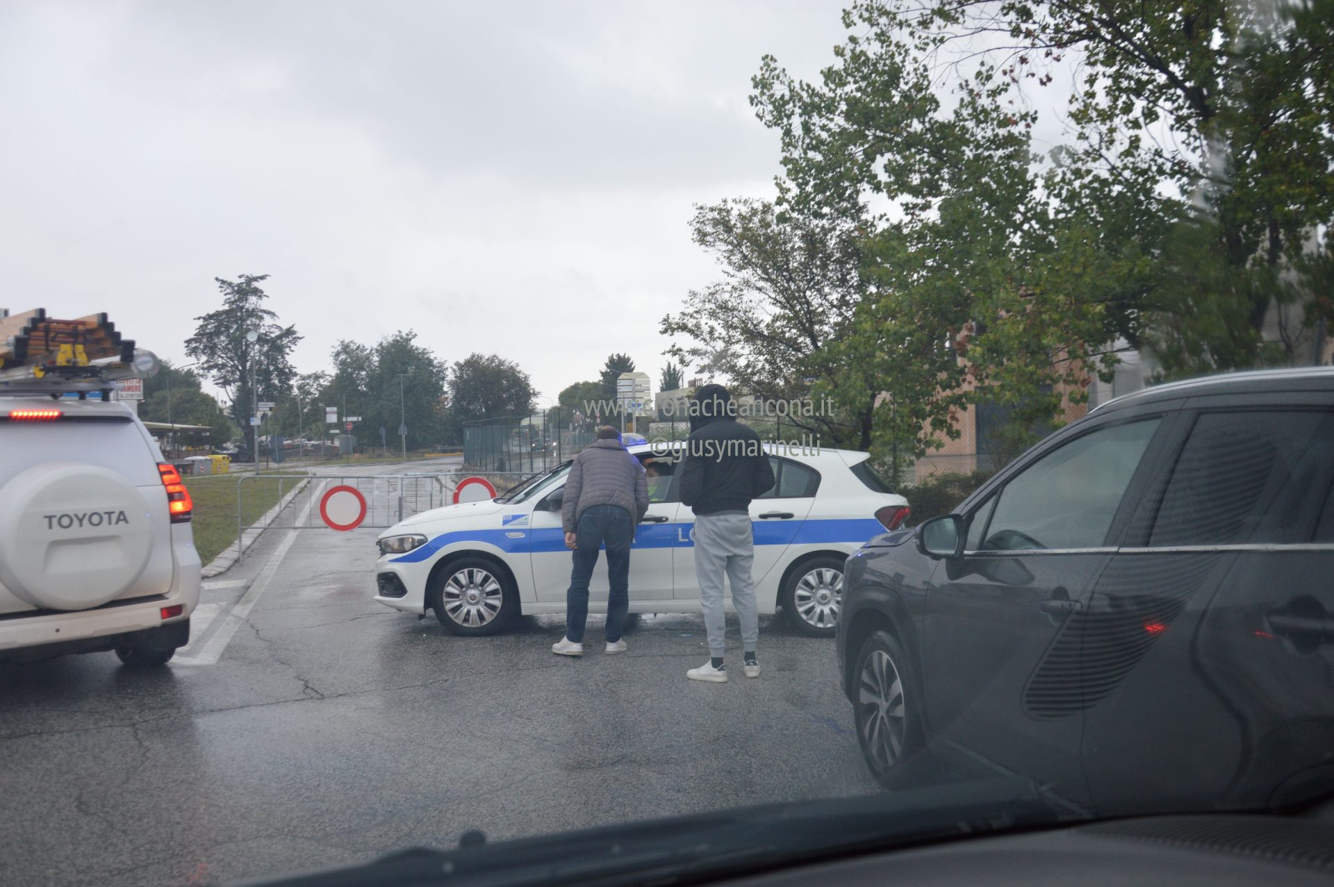 Sbarramenti della polizia locale nei pressi dell’aeroporto durante l’emergenza maltempo, il 18 settembre scorso