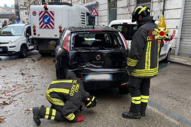 ANCONA – E’ successo stamattina intorno alle 11 in via Mamiani. Sul posto la Polizia locale, i vigili del fuoco e i mezzi del 118 che hanno trasportato il 60enne all’ospedale di Torrette