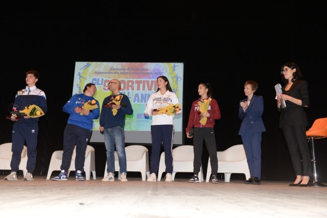 Un momento di grande significato è stato dedicato ai cinque atleti. Sofia Raffaeli, Milena Baldassarri, Giorgio Farroni, Christian Scasselati e Daniel Gerini, che hanno raggiunto successi storici, portando il nome di Fabriano agli eventi più prestigiosi, come le recenti Olimpiadi, le Paralimpiadi e i Campionati del mondo di specialità. La loro presenza è stata salutata con emozione, consapevoli di vivere una pagina storica per lo sport cittadino. Gli atleti premiati hanno voluto condividere riflessioni ed emozioni con i più giovani, ricordando che la chiave del successo nello sport è trovare divertimento in ciò che si fa, mantenere la curiosità e affrontare ogni sfida con passione. L’evento ha confermato Fabriano come una delle realtà più vincenti e significative in ambito sportivo. La città ha poi reso omaggio a 120 tra atleti e società che ogni giorno lavorano per rendere possibili quei sogni sportivi che si sono trasformati in realtà, ricordando che il vero trionfo è quello che si costruisce insieme, con passione e spirito di squadra.