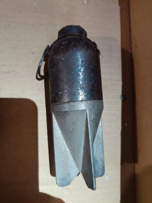 La bomba a mano è risultata, dopo attenta ispezione, vuota; mentre la bomba da mortaio era perfettamente funzionante ed è stato dunque necessario farla brillare.