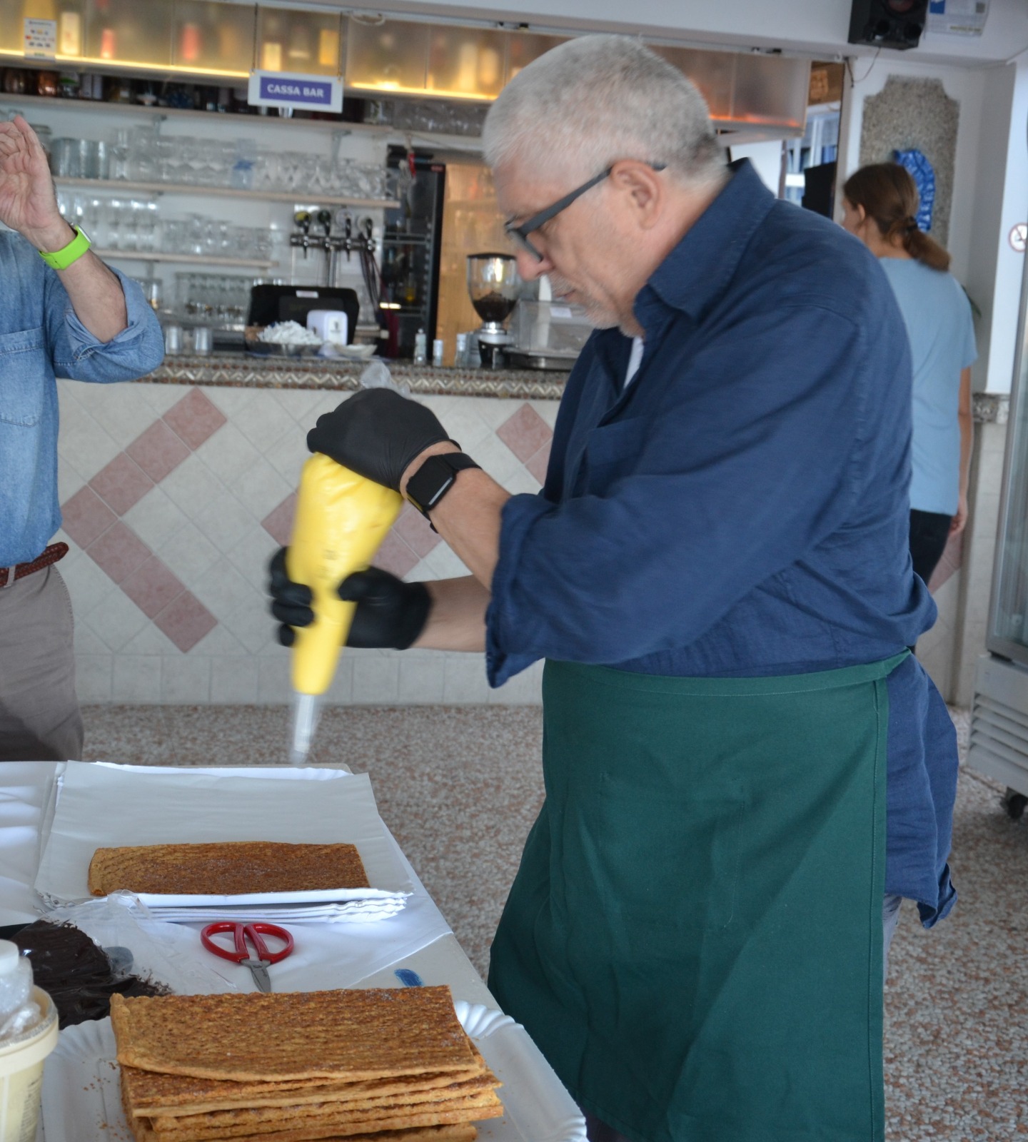 E’ stata piacevole e inaspettata anche la visita di una tifosa, che venuta a conoscenza dell’incontro tra gli ex calciatori, ha voluto salutare il suo beniamino dell’epoca. Il pranzo ha visto anche la dimostrazione della realizzazione dei dolci in diretta dalle mani sapienti dall’ ex attaccante, oggi chef dolciario, Enzo e degustati di buon gusto da tutti sul momento. Una bella giornata, se si può dire nella sua accezione più ampia, “di sport”, che si è svolta all’insegna della spensieratezza tra aneddoti, ricordi e con un brindisi finale beneaugurante. Di certo, si ripeteranno nuovi incontri per “allargare la rosa dei partecipanti” e rituffarsi nei periodi spensierati del calcio giovanile giallo rosso del nostro passato.