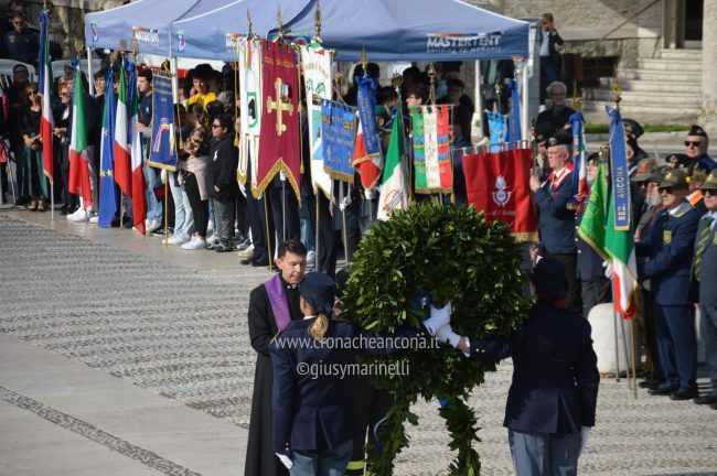 Una celebrazione particolarmente sentita quella del 4 novembre – , ha detto il presidente della Regione, Francesco Acquaroli – anche per il contesto che viviamo, con i conflitti che purtroppo stanno condizionando questa epoca. E’ importante dare forza a una memoria – ha aggiunto -, come testimonianza per le nuove generazioni, anche in un momento in cui purtroppo, come dicevo, dei conflitti stanno condizionando la libertà dei popoli. Civiltà e democrazia sono valori che si riescono a trasmettere con la consapevolezza di quello che è accaduto tanti anni fa, e con tante persone che hanno lasciato la vita con estremo sacrificio per consentirci oggi questa libertà e questa democrazia».