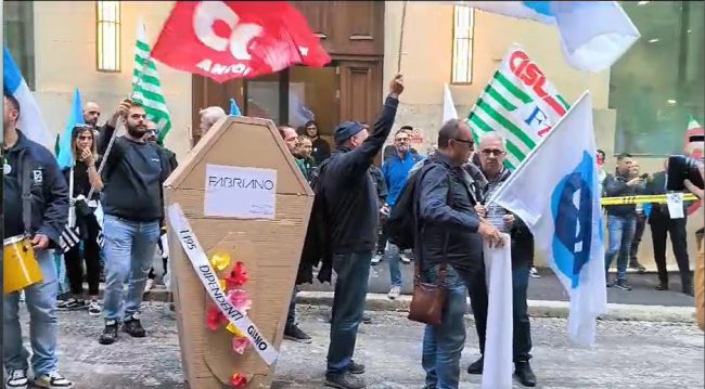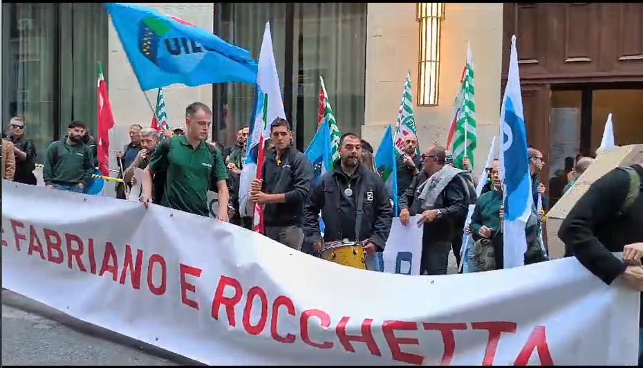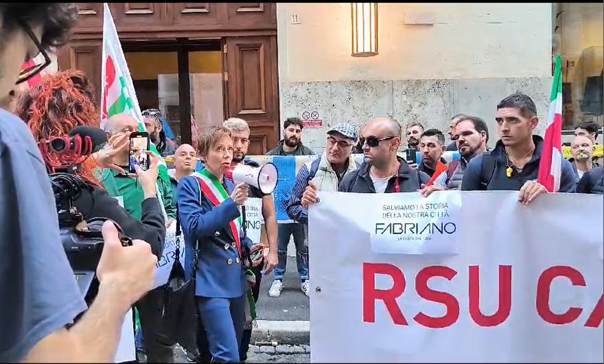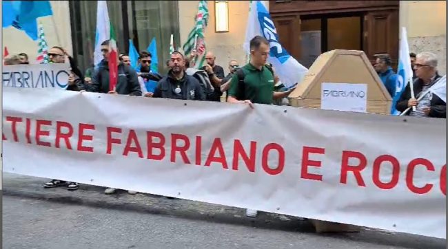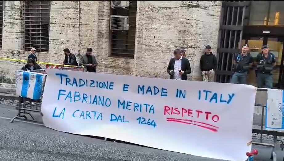 Fino ad oggi i sindacati di settore come anche Comune e Regione Marche hanno ritenuto insufficienti le proposte avanzate dalla proprietà della cartiera, che produce carta per fotocopiatrici, per salvaguardare l’occupazione limitando i licenziamenti. Davanti al Mimit oggi pomeriggio le maestranze degli stabilimenti di Fabriano e Rocchetta hanno esposto un lungo striscione e cartelli con una bara di carta, gridando a più riprese «la cartiera non si tocca».