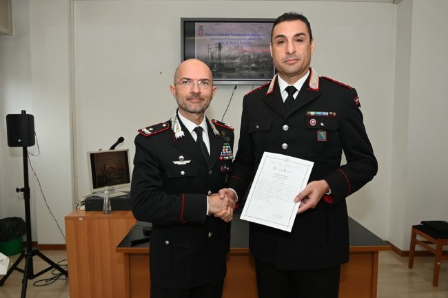 Al termine del discorso, il Generale Conforti ha consegnato delle ricompense ai militari della provincia di Ancona recentemente distintisi in importanti operazioni di servizio, tra cui la medaglia di bronzo al valor civile concessa al Maresciallo Luigi Scapicchio, comandante della Stazione di Arcevia, per un coraggioso intervento effettuato nel 2016 all’interno di un’abitazione in fiamme di Corinaldo, durante il quale il sottufficiale aveva tratto in salvo una donna già avvolta dal fuoco facendosi largo con mezzi di fortuna nell’appartamento saturo di fumo e trasportandola all’esterno. Encomi sono stati poi concessi ai militari del Nucleo Operativo e Radiomobile della Compagnia di Osimo per un’operazione di servizio che ha condotto all’arresto di due soggetti campani che avevano posto in essere 40 truffe ad anziani nelle Regioni Marche, Abruzzo e Puglia nel 2023; al comandante e ai militari del Norm di Jesi per l’arresto di un rapinatore che aveva compiuto ben 3 rapine a mano armata nel centro di Jesi nel luglio scorso; al comandante della Stazione di Ancona Principale per l’arresto, ad esito di una complessa indagine condotta nel 2023, di una persona responsabile di atti sessuali ai danni di minorenni e di detenzione di materiale pedopornografico.