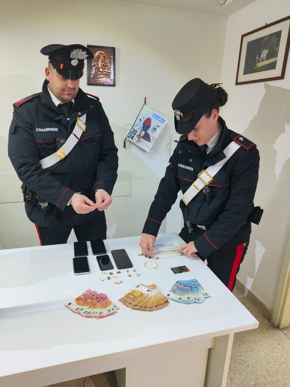 Effettuata una perquisizione, nella vettura sono stati trovati contanti e gioielli per i quali i tre non hanno saputo fornire alcuna spiegazione circa il possesso. Le indagini immediatamente avviate, hanno chiarito in breve tempo come i gioielli fossero stati rubati pochi minuti prima a una sirolese di 91 anni.