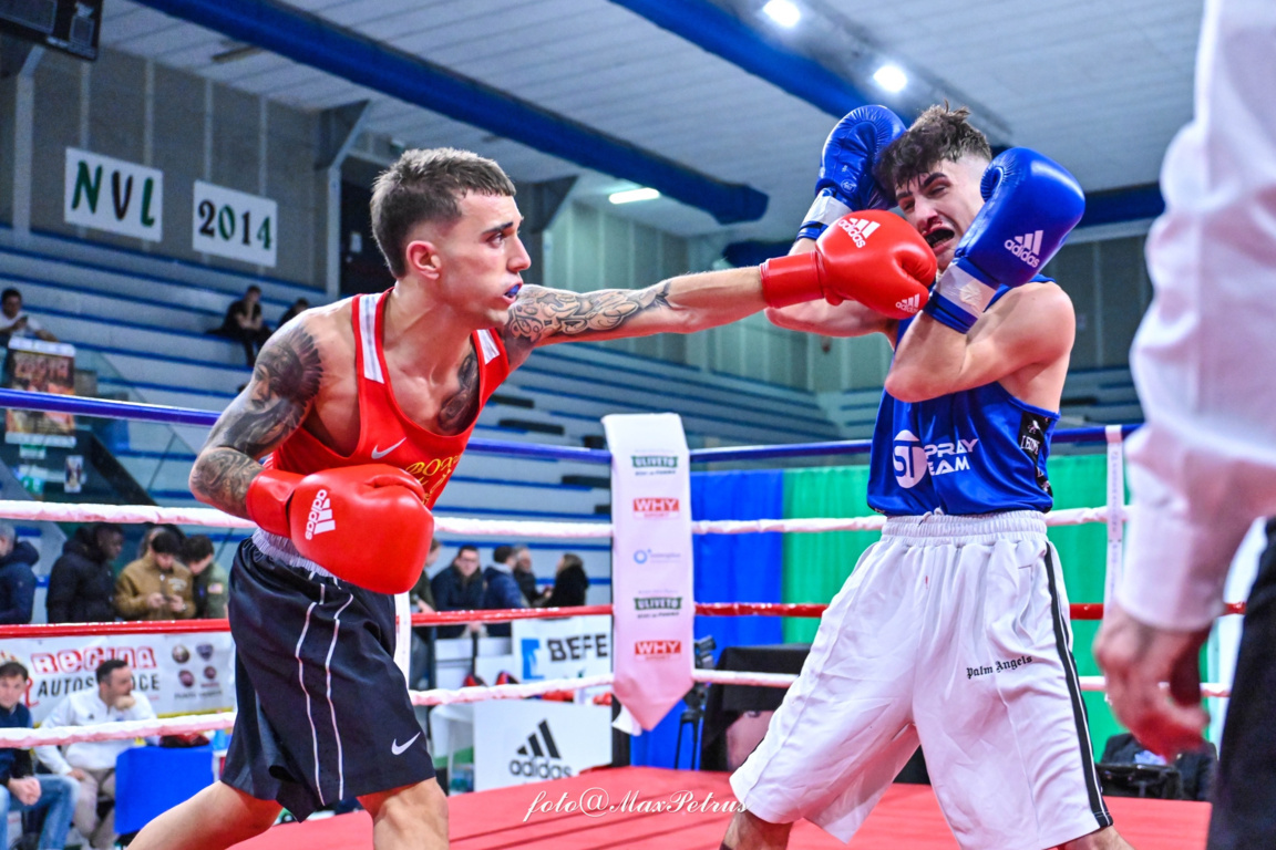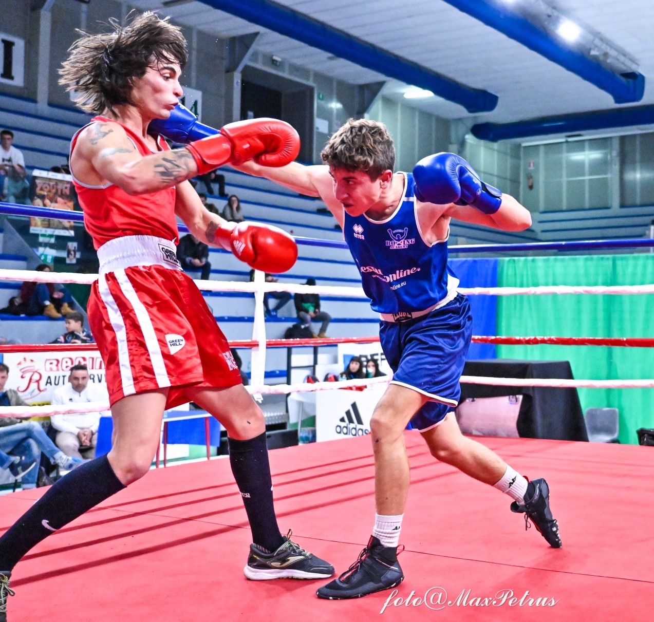 Nei 71 Kg. Achraf Cheriti della Canappa Boxing riesce di misura a superare il bravo Nicolò Rago dell’Ascoli Boxe in un match molto equilibrato, combattuto intensamente senza risparmi da entrambi gli atleti. Nicolò Galli della Pugilistica Senigallia si laurea campione regionale nella categoria dei 75 kg. contro Leonardo Ciccalè della Boxing Academy Loreto in un match molto vivace che avrebbe avuto un epilogo incerto se non interrotto al secondo round dal medico di ring intervenuto per una ferita accidentale sull’arco sopraccigliare sinistro accusata dal pugile senigalliese. Il punteggio sin lì determinato dagli ufficiali di gara ha decretato la vittoria di Galli.