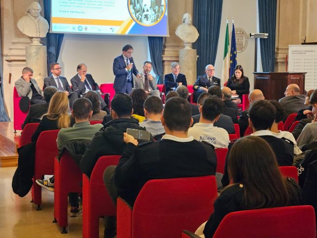 Si è svolto alla Loggia dei Mercanti il Convegno “Confronto e riflessioni sulla crisi vocazionale nel settore marittimo: quali soluzioni?”, organizzato dalla Capitaneria di Porto di Ancona con la collaborazione della Camera di Commercio delle Marche e del Collegio Nazionale dei Capitani e con la sovvenzione del Comune dorico ed il patrocinio dell’International Propeller Club di Ancona.
