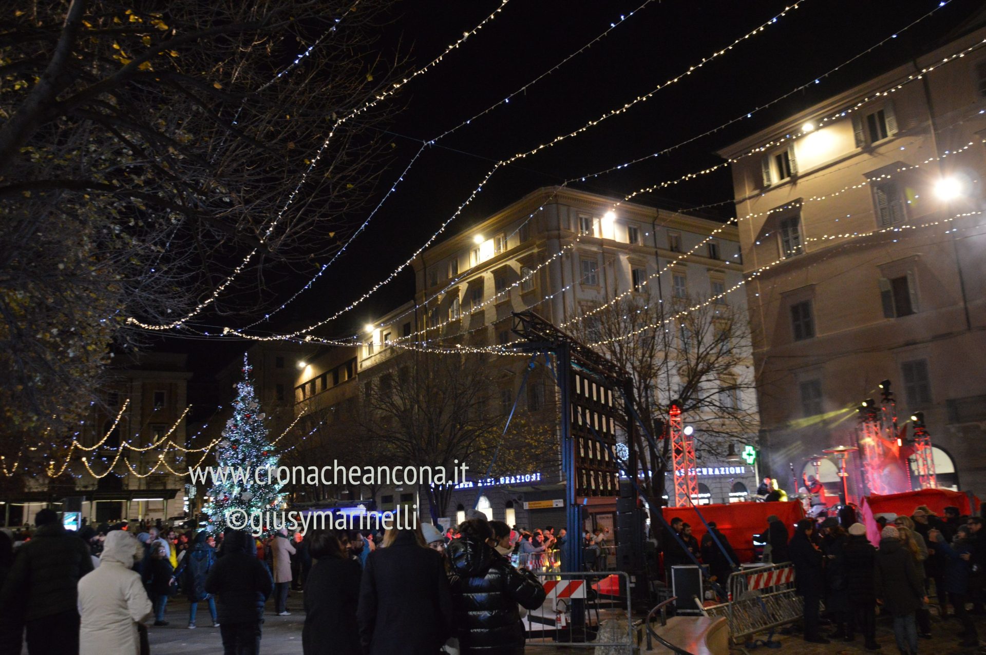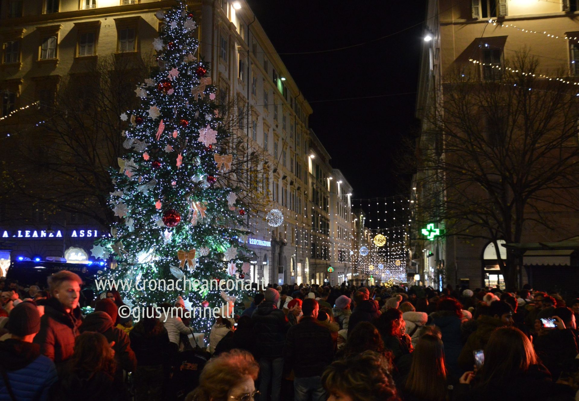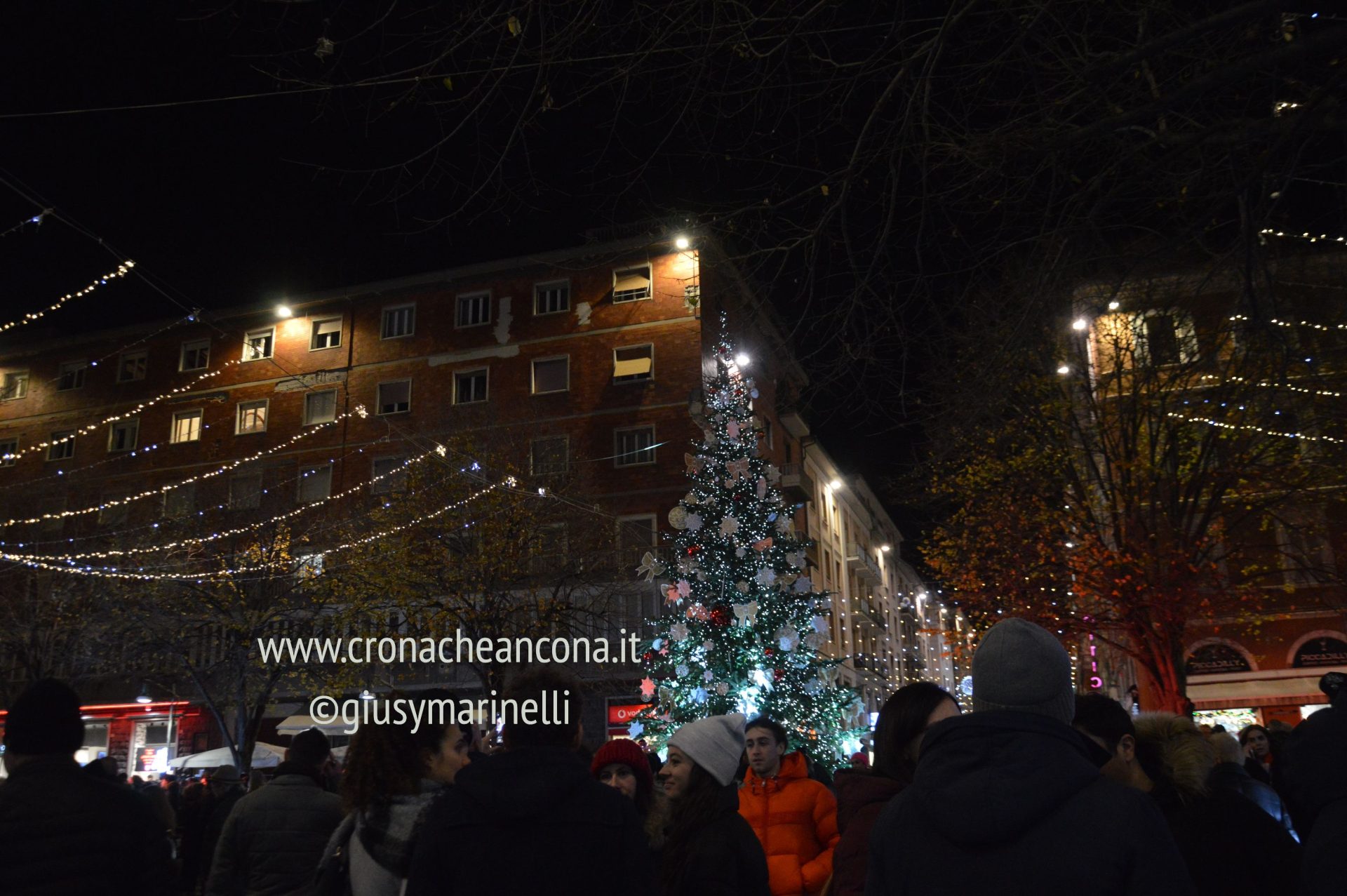 L'accensione dell'albero e delle luminarie in piazza Roma per 'Ancona che brilla' (Video Giusy Marinelli)