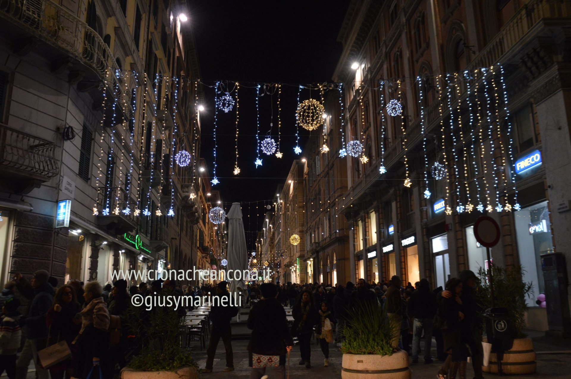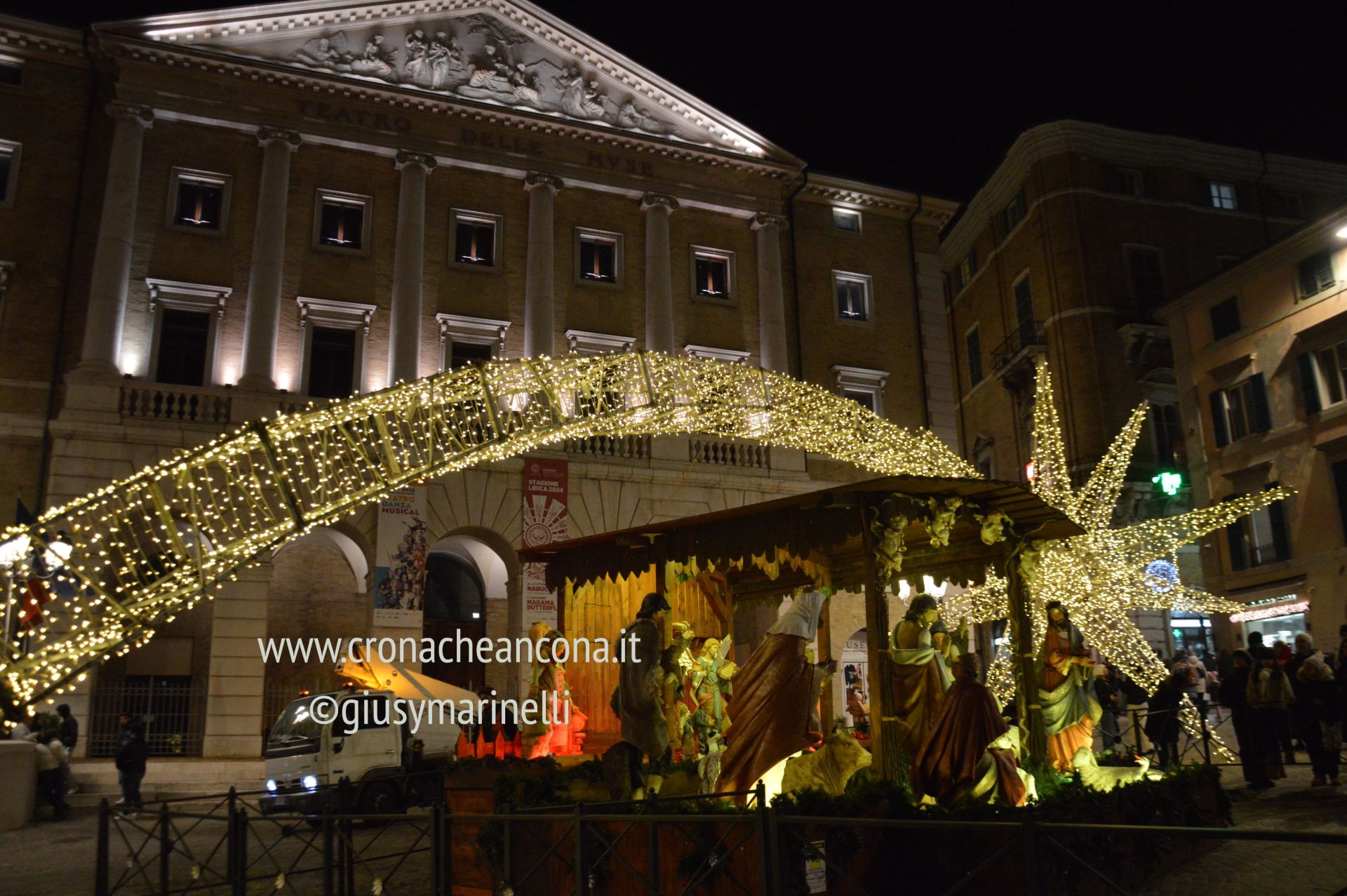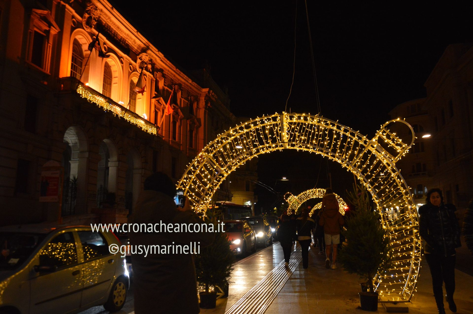 L'accensione dell'albero e delle luminarie in piazza Roma per 'Ancona che brilla' (Video Giusy Marinelli)