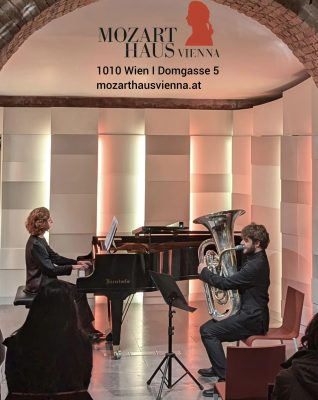 La prestigiosa Konzertsaal della Mozart Haus di Vienna ha ospitato il 28 novembre scorso un recital del solista di tuba Gianmario Strappati. L’evento già in stagione, è stato proposto dalla Mozart Haus con la partecipazione della Società Dante Alighieri e dell’Ambasciata d’Italia in Austria. Un’ iniziativa straordinaria che per la prima volta ha portato all’ascolto del pubblico la tuba in veste di solista, in questo “tempio” della musica dedicato a Mozart.