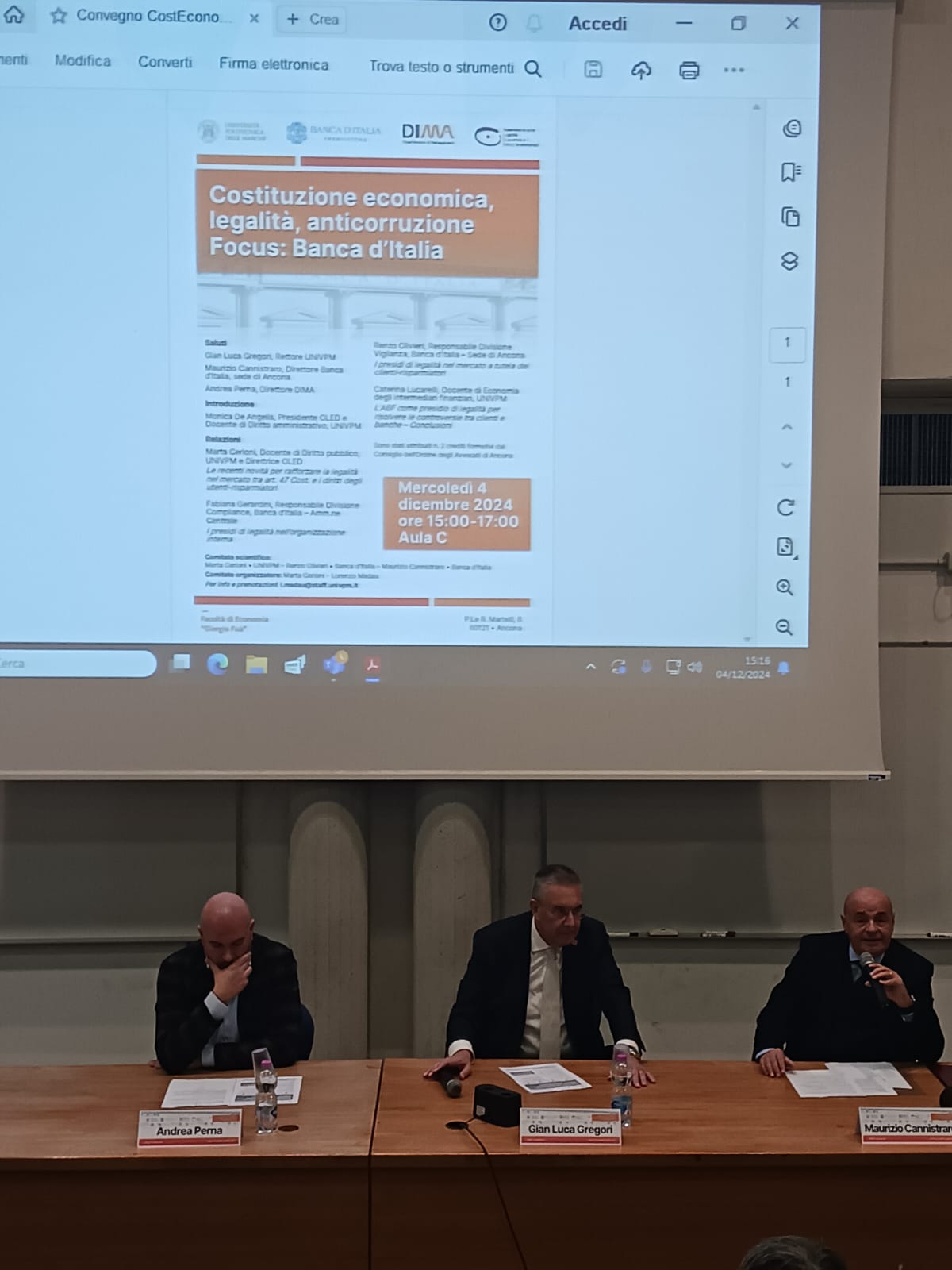 Si è svolto mercoledì nella facoltà di Economia “G. Fuà” dell’Università Politecnica delle Marche il convegno “Costituzione economica, legalità, anticorruzione.