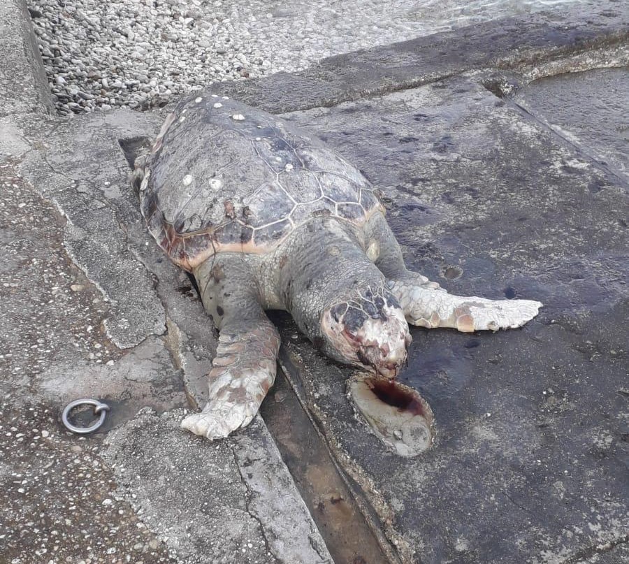 L’esemplare di tartaruga Caretta caretta trovato morto sulla spiaggia del Passetto