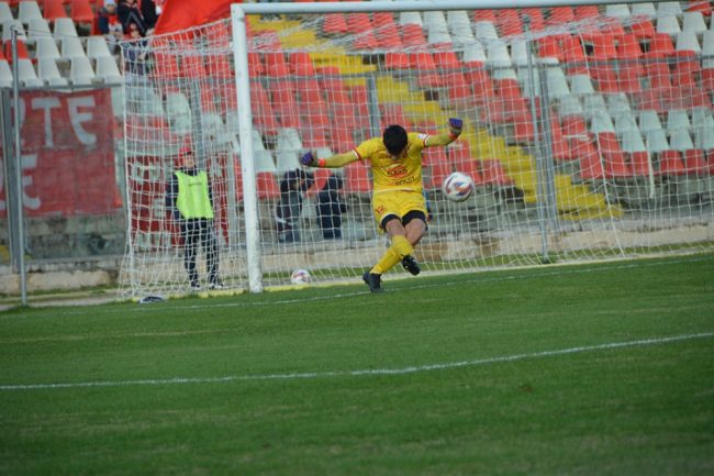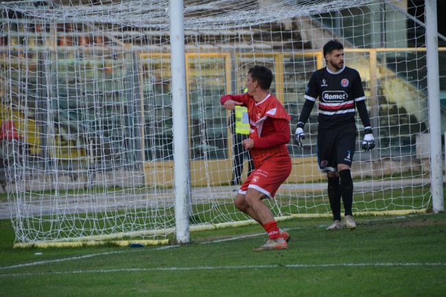 Il pareggio al 68’, l’arbitro assegna il calcio di rigore ai padroni di casa per un fallo di mani in area, Martiniello sul dischetto degli undici metri spiazza Bianchini e fa 1 a 1.