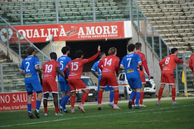 FOSSOMBRONE (4-4-2): Bianchini; Bianchi, Urso (34’ st Bucchi), Camilloni (11’ st Riggioni), Procacci; Amerighi, Conti, Pandolfi Leonardo, Podrini (28’ st Torri); Casolla (28’ st Pandolfi Riccardo), Broso (22’ st Kyeremateng). A disp.: Amici, Tamburini, Maroncelli, Satalino, Fraternali. All. Fucili.
