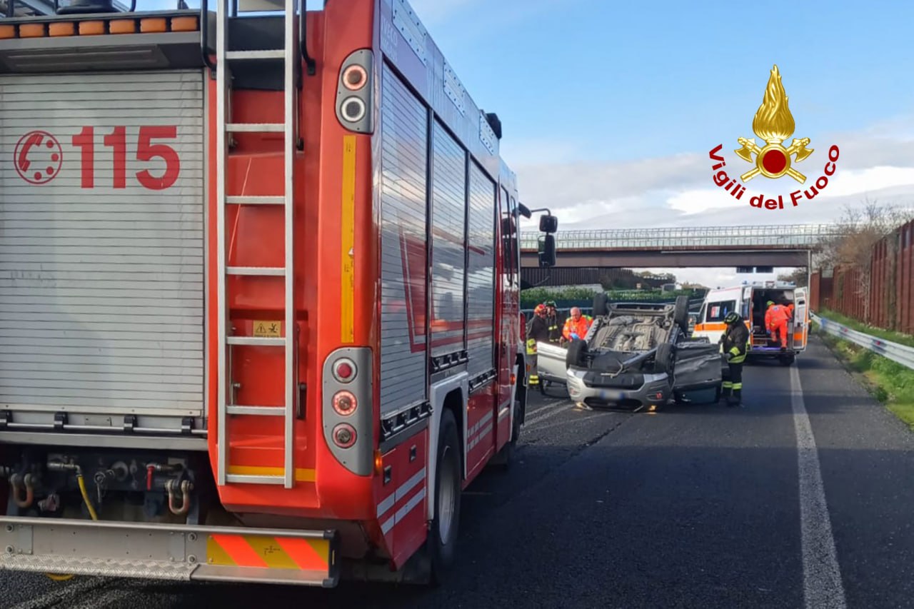 E’ avvenuto poco dopo le 13 quando, lungo la Complanare nord, due auto si sono scontrate e una si è capottata rimanendo in mezzo alla carreggiata.