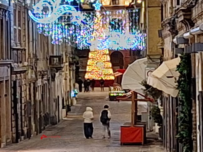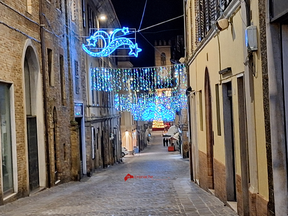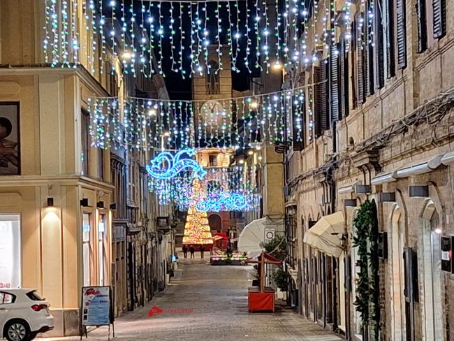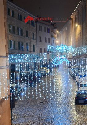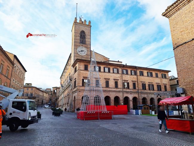 Anche l’abete tecnologico è stato montato oggi in piazza Boccolino visibile nella prospettiva di Corso Mazzini, che completa cos il Villaggio di Babbo Natale incorniciato negli altri addobbi luminosi nel cuore di Osimo. Nel tardo pomeriggio sono state inoltre accese le luminarie in tutto centro storico per creare la giusta atmosfera di festa che la pioggia battente non ha affievolito.