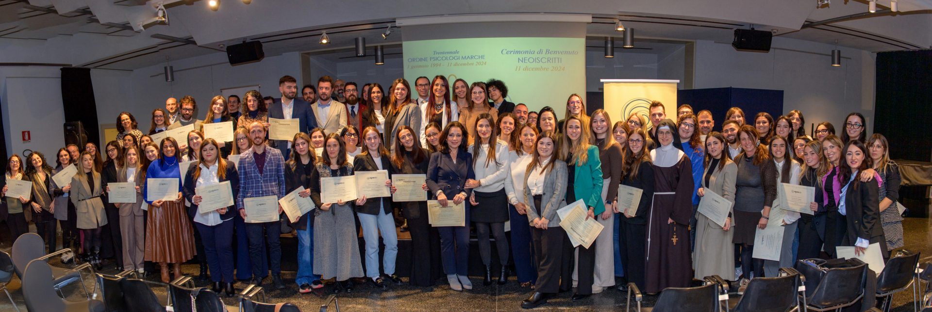 Nell’ultimo anno son 169 i giovani ufficialmente entrati nell’Ordine degli Psicologi, accolti mercoledì scorso con una cerimonia nel Salone delle Feste del Teatro delle Muse di Ancona. Per l’occasione, la presidente dell’Ordine marchigiano, Katia Marilungo, e la consigliera e segretaria, Federica Guercio, insieme al coordinatore commissione cultura, Aquilino Calce, hanno consegnato loro la pergamena che segna ufficialmente l’ingresso nell’albo. L’evento era dedicato anche ai 57 professionisti con 30 anni di attività, che hanno ricevuto un attestato di benemerenza.