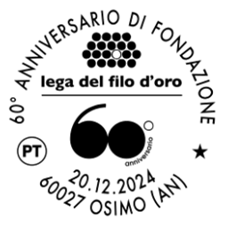 In occasione dell’anniversario della Lega del Filo d’oro in programma a Osimo il 20 dicembre, Poste Italiane attiverà un servizio filatelico temporaneo con bollo speciale con la dicitura “60° anniversario di Fondazione” richiesto dalla Fondazione stessa. «Nello stesso giorno dalle ore 10.15 alle 15.45 sarà possibile timbrare con il bollo speciale le corrispondenze presentate presso la postazione di Poste Italiane allestita presso il Centro Nazionale, in via Linguetta 3. Eventuali commissioni filateliche potranno essere inoltrate a: Poste Italiane / Filiale di Osimo. Per qualsiasi informazione o curiosità sugli annulli e su tutto il mondo della filatelia è disponibile il sito filatelia.poste.it» f sapere Poste Italiane.