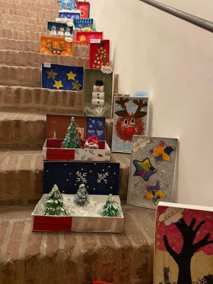 «Il disegno infantile può essere considerato arte? – domanda una nota del comune di Fabriano – Pensiamo ad autori come Kandinsky, che per ricercare la matrice primordiale del linguaggio, riscopre quella matassa e quei ghirigori infantili o come Paul Klee, che nei suoi quadri ripropone segni e motivi dominanti del disegno infantile, ancora Pollock, Picasso, Mirò che ripropongono temi presenti nei disegni dei bambini. Da qui “Arte in scatola”: 300 capolavori realizzati con l’ausilio di carta, cartone, colori, scatole, materiali riciclati e non, donati dalle aziende del territorio, riciclo scolastico, posizionati nella Pinacoteca Bruno Molaioli, Biblioteca Multimediale Romualdo Sassi, Museo della Carta e della Filigrana e nelle attività commerciali di Fabriano e Cerreto d’Esi. In questa edizione oltre alla partecipazione delle Scuole dell’infanzia Aldo Moro, Bruno Munari, Santa Maria, Hansel e Gretel, partecipano anche gli alunni delle prime sezioni Primaria Aldo Moro e Marco Mancini».