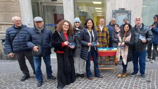 Il banchetto della coalizione di centrosinistra a Osimo con Michela Glorio