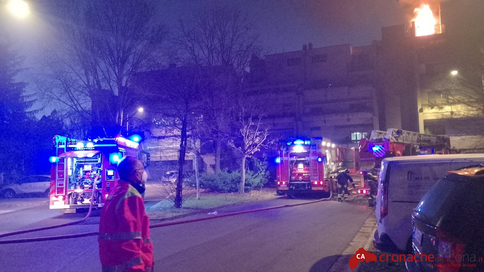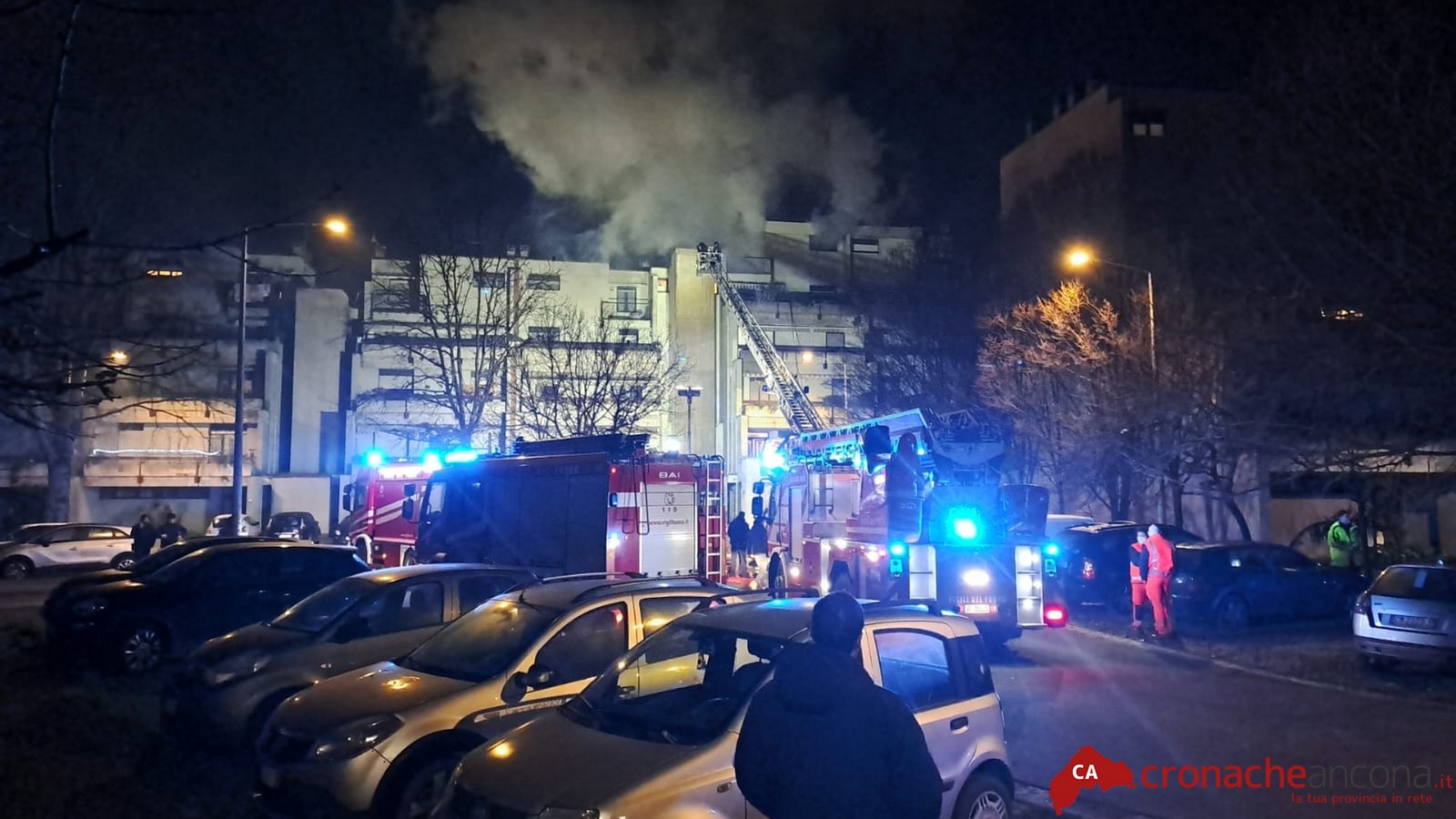 Sono stati momenti drammatici quelli vissuti nel pomeriggio in via Fuà, nella prima periferia di Ancona, quando intorno alle 17 il quarto e ultimo piano di una palazzina è andato a fuoco.