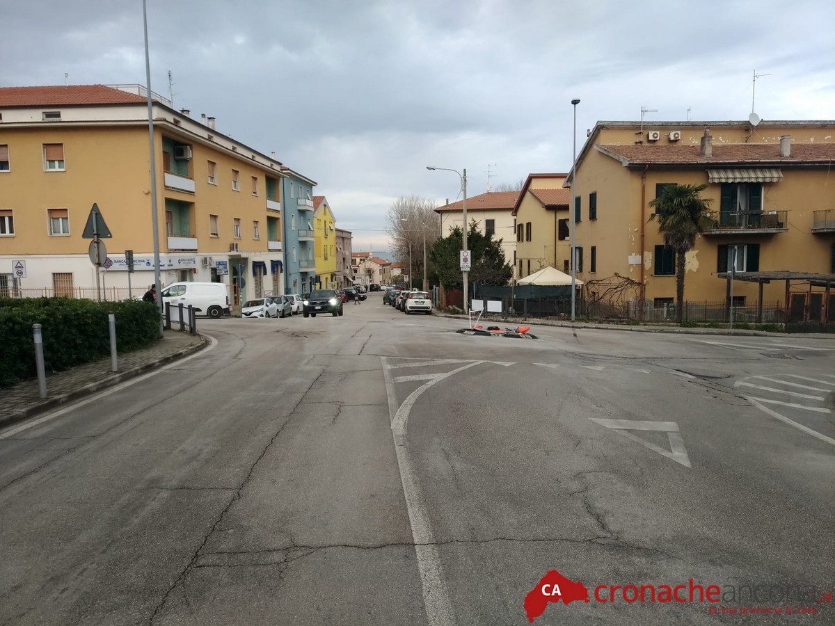 La “rotatoria” tra via Esino e via Metauro a Torrette