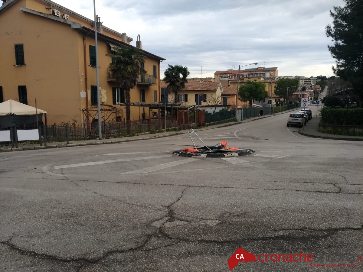 Si tratta della pericolosissima “rotatoria” che dovrebbe regolare gli incroci tra via Esino e via Metauro, a Torrette. Quella che somiglia però maggiormente ad una sorta di aiuola piuttosto che ad una rotatoria, si trova infatti decentrata rispetto alle corsie di marcia e, chi non è del quartiere, invece che girarci attorno, la “taglia” facendo così un’involontaria invasione di corsia.