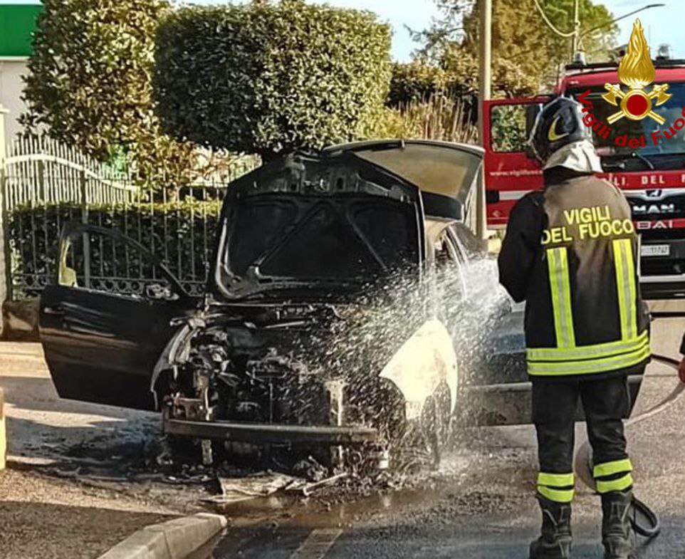 Intervento dei vigili del fuoco, in via Jesi, per l’incendio di un’auto alimentata a gasolio.