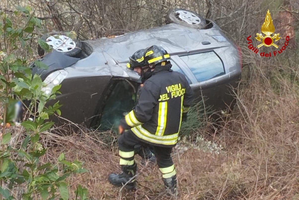 Per cause in corso di accertamento, un’auto è uscita di strada, capottandosi in una scarpata.