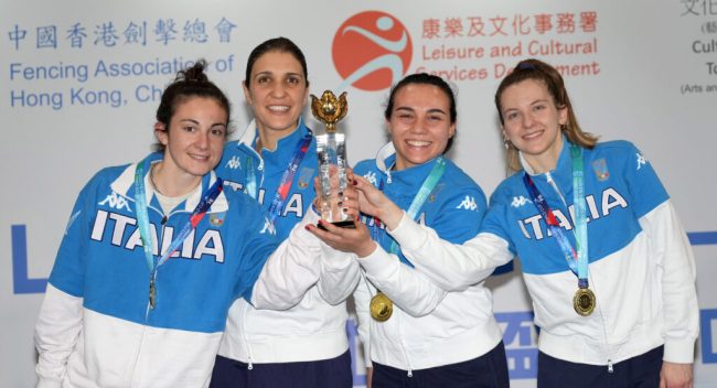 Seconda vittoria consecutiva in questa stagione di Coppa del Mondo per la squadra italiana di fioretto femminile. Il team composto dall’atleta jesina del Centro Sportivo Esercito Elena Tangherlini, Arianna Errigo, Martina Favaretto e Anna Cristino ha dominato e conquistato anche la prova di Hong Kong (un mese dopo aver fatto lo stesso a Busan, in Corea), superando in finale le campionesse olimpiche degli Stati Uniti d’America in un match a senso unico, chiuso con il successo delle azzurre per 45-27. La vittoria per Elena Tangherlini arriva dopo che nelle prove individuali di ieri aveva conquistato il 14° piazzamento.