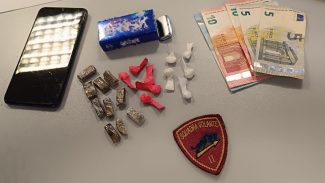 Gesto che non è passato inosservato agli agenti. Recuperato il contenitore, all’interno sono state trovate diverse dosi di sostanza stupefacente: circa 10 grammi di hashish, 3 di cocaina e 3 di anfetamine e metamfetamine, singolarmente confezionate e pronte alla vendita. Inoltre, addosso aveva 50 euro in banconote di piccolo taglio.