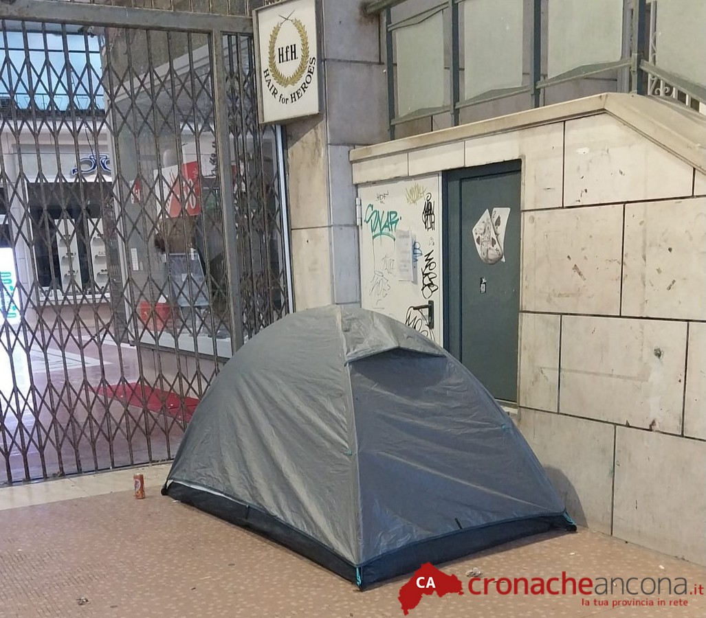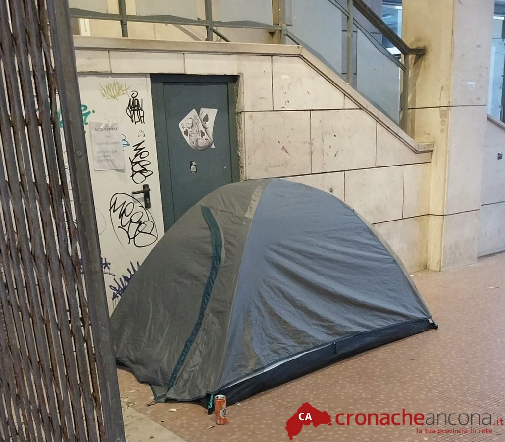 Sotto la Galleria Dorica, nel cuore del centro storico, questa mattina c’è chi vi dormiva addirittura con tanto di tenda montata, come se tutto fosse ormai lecito.