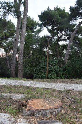 «Ieri mattina, in fretta e furia, sono stati abbattuti due alberi nella pinetina di via Podgora e non si sa perché. Alberi sanissimi apparentemente, uno alto e grande come i vicini, e l’altro piantato una ventina di anni fa o poco meno. Verranno ripiantati?